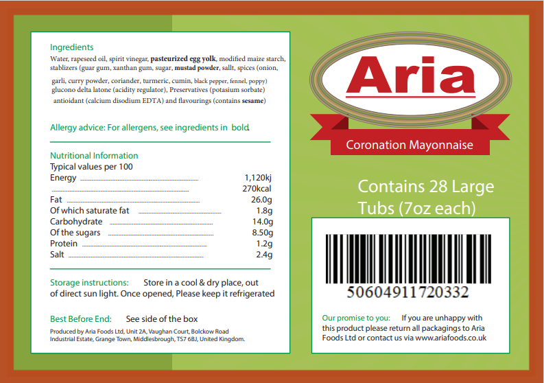 Aria Coronation Mayonnaise Tub- 7oz (190g) (Box of 28)